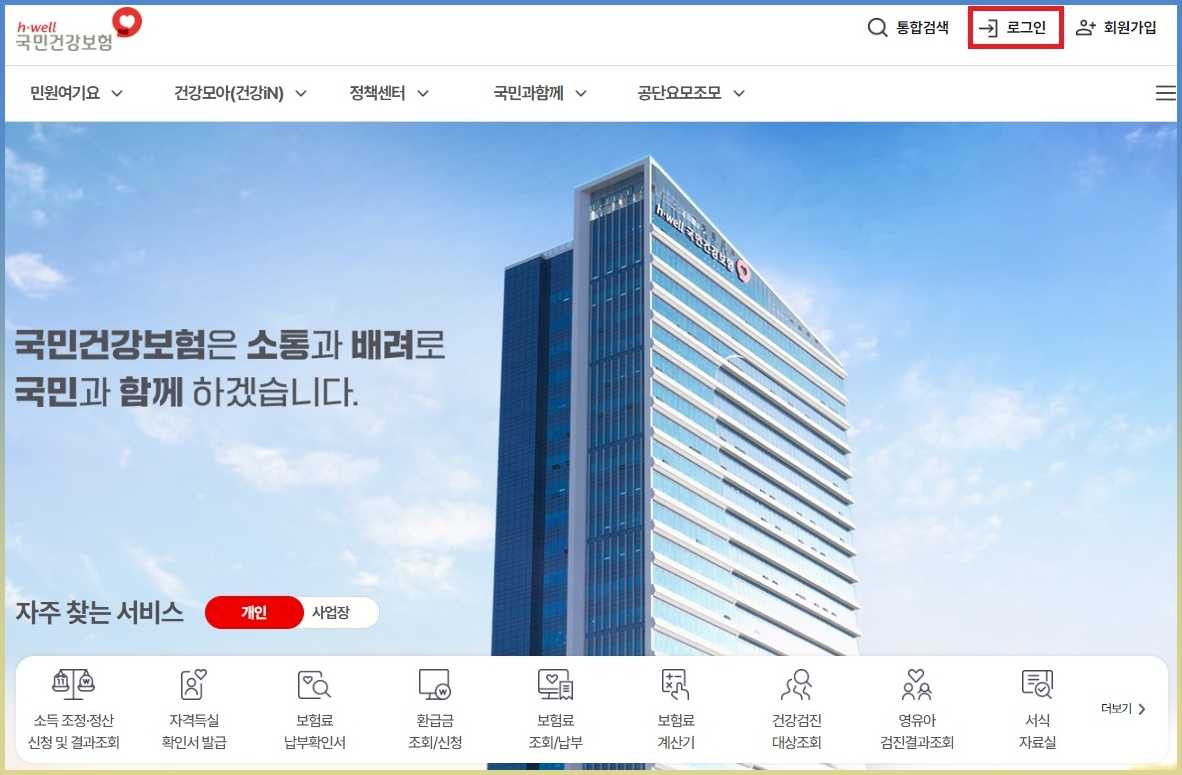 1. 국민건강보험 공식 사이트 로그인