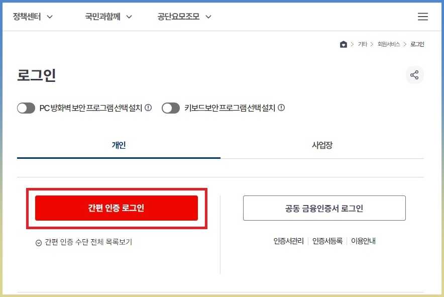 : 네이버, 카카오 등 편한 인증 수단 선택